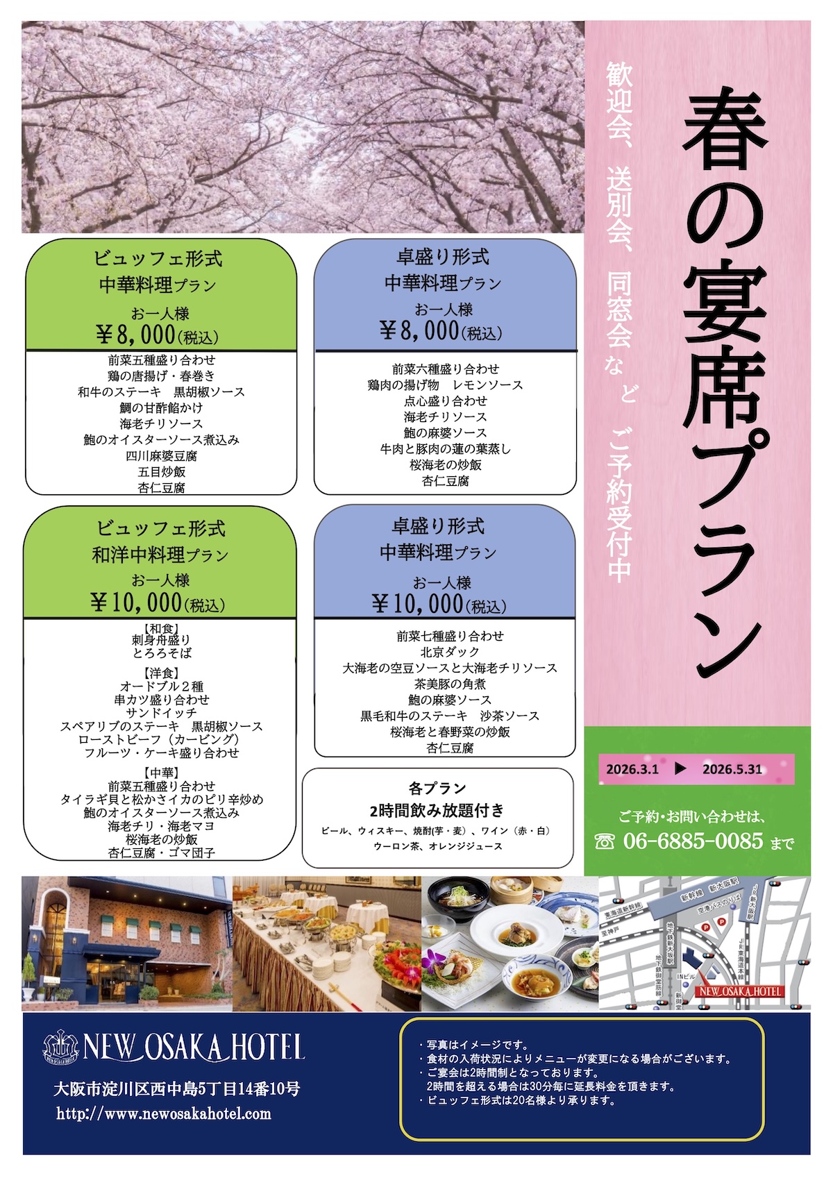 宴会専用お問合わせ:banquet@newosakahotel.com